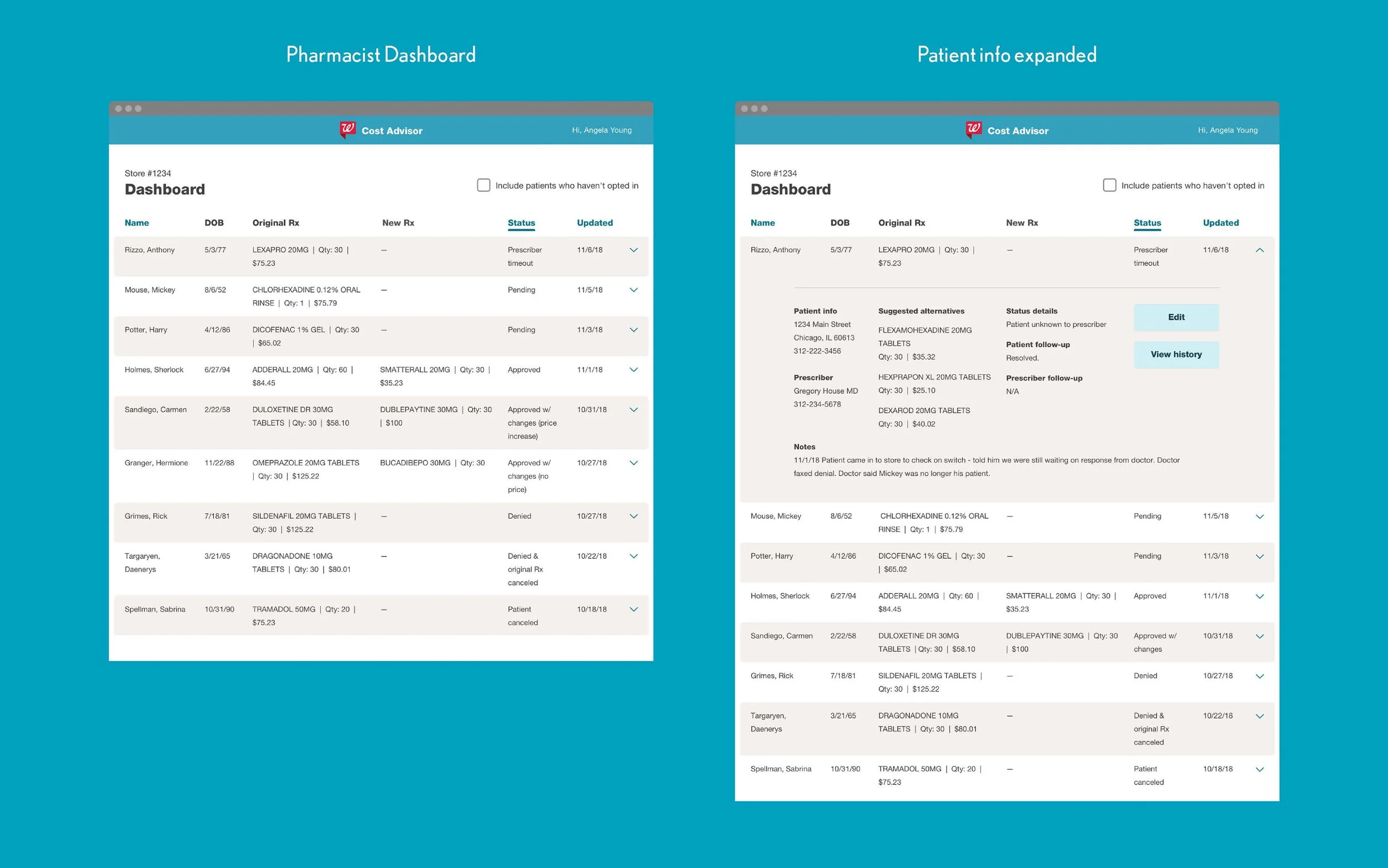 I was responsible for designing the patient experience and the pharmacy portal. I worked closely with the team from start to finish—including concept development, design execution, design revisions based on customer research, and close collaboration with engineers as they build the product.